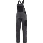 Dámské montérkové kalhoty s náprsenkou, z lehkého materiálu, náprsní kapsa s klopou, přední klínové kapsy, boční kapsa s klopou, kapsa na skládací/svinovací metr, zadní jednoduchá kapsa, šle vzadu na gumu. Díky odlehčené gramáži vhodné pro práci neje