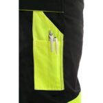 Pánské zahradníky, zesílená kolena s možností vložení kolenních výztuh, pevný pas s poutky na opasek, přední klínové kapsy, zadní kapsy s klopami, boční multifunkční kapsy, náprsenka s kapsou, reflexní doplňky.