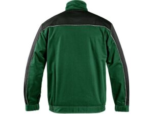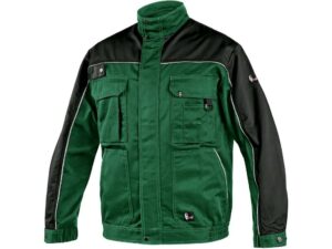 Pánská montérková blůza, odepínací rukávy s pružnou manžetou, kryté zapínání na zip a suché zipy, náprsní kapsy s klopami, skrytá náprsní kapsa na zip, jednoduché boční kapsy, spodní část na bocích do gumy, reflexní doplňky.