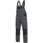 Pánské montérkové kalhoty s náprsenkou, strečová tkanina umožňující volný pohyb, náprsní kapsa s klopou, pas s poutky na opasek, přední kapsy s kapsou na zip, multifunkční kapsy na obou stranách, kolena zesílena 600D polyesterem s možností vložení ko